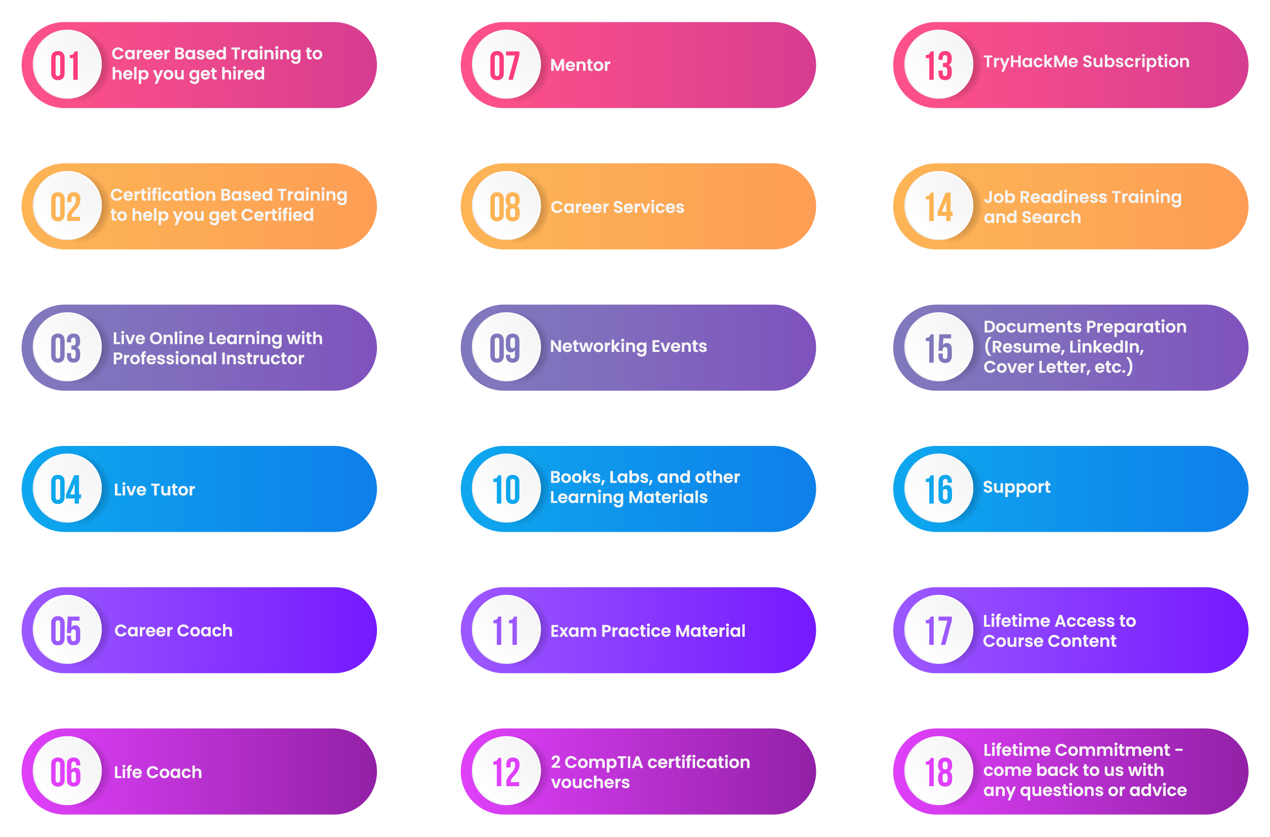 Take charge of your cybersecurity future and unlock endless opportunities by enrolling in our most popular track. Gain the essential skills and industry-recognized certification to fortify digital defenses, outsmart hackers, lock down networks, protect sensitive data, and emerge as a trusted cybersecurity professional.